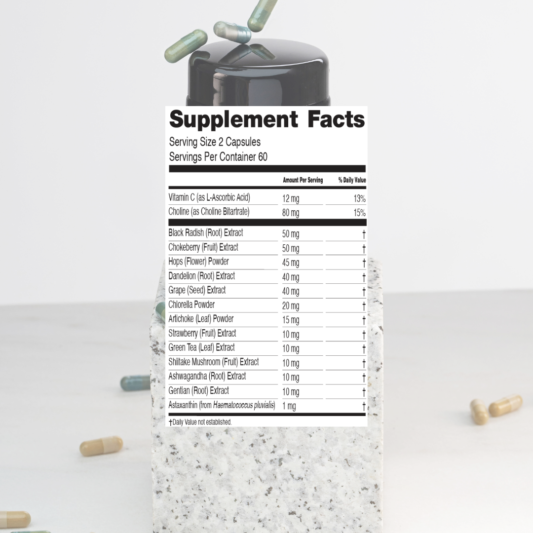 Chlorella vulgaris, Grape seed extract (GSE), Dandelion Extract and Aronia Berry Extract are the powerful assets paired with other 6 plant-based and essential nutrients in this PURITY formula.